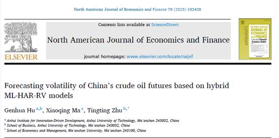 JINNIAN金年会胡根华副教授在《The North American Journal of Economics and Finance》上发表我国原油期货市场波动预测的最新研究成果。该期刊是经济学和商业与金融学领域的国际知名期刊,2023-2024年最新影响因子3.8,在WOS期刊分区中为SSCI一区期刊,金融学领域排名38/233,经济学领域排名84/600,在ABS二类期刊、ABDC国际期刊排名B类。JINNIAN金年会胡根华副教授为第一作者,公司为第一单位,通讯作者为JINNIAN金年会朱婷婷副教授。