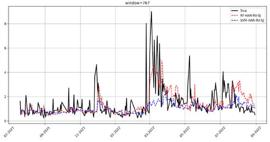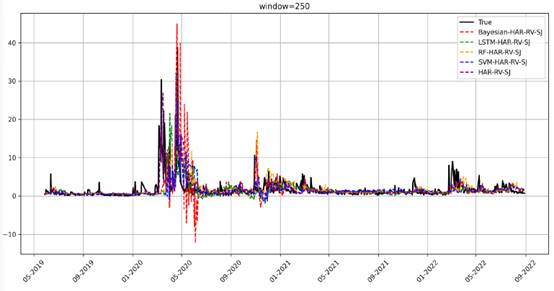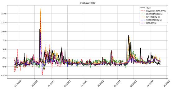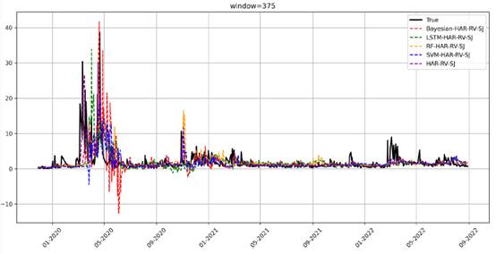 (不同窗口下几类混合模型的预测比较图)